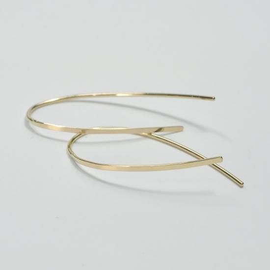 ひねりの効いたシンプルな地金のイヤースルーピアス。