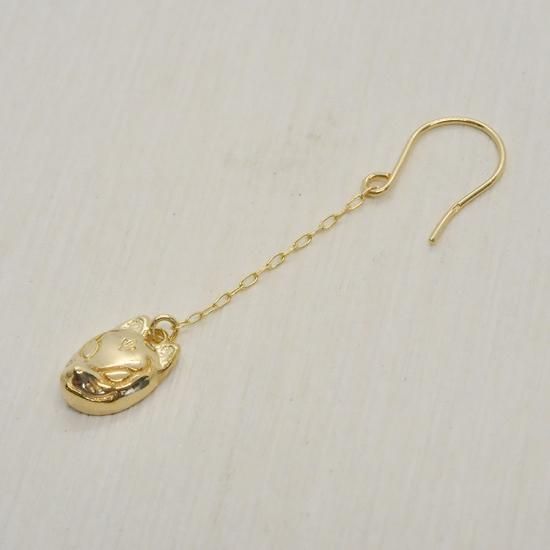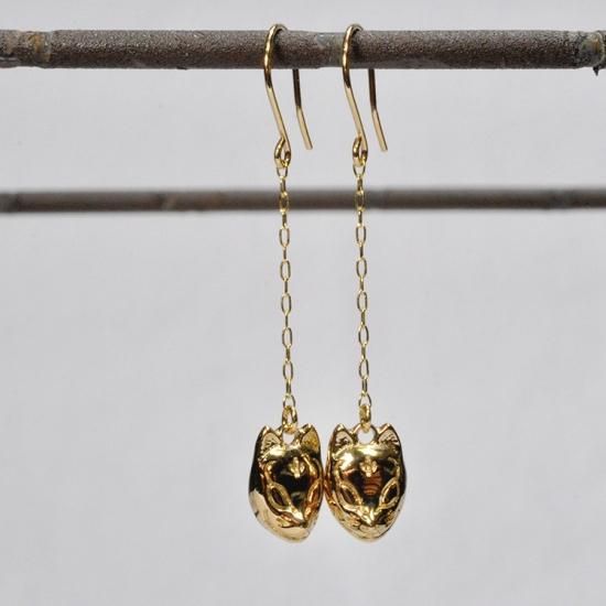 K10(イエローゴールド) お面モチーフ(キツネ) 揺れる チェーンフックピアス