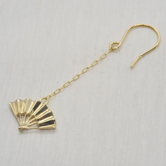 K10(イエローゴールド) 扇子モチーフ 揺れる チェーンフックピアス