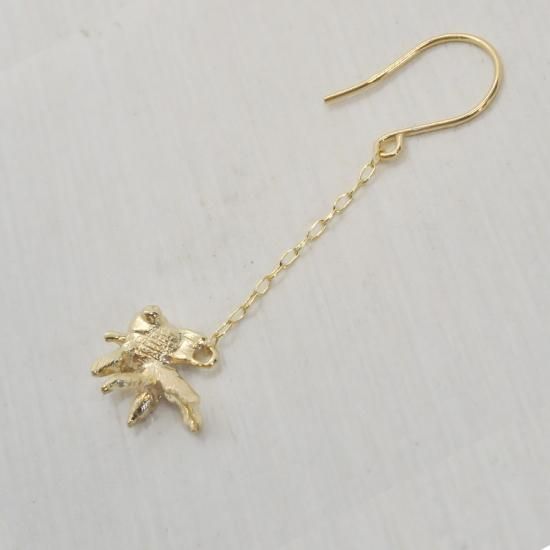 K10(イエローゴールド) 金魚モチーフ 揺れる チェーンフックピアス