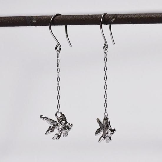 K10WG(ホワイトゴールド) 金魚モチーフ 揺れる チェーンフックピアス
