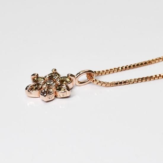 ブラウンダイヤと相性抜群(より一層カラーダイヤが美しく映える)のピンクゴールドやイエローゴールドカラーの地金にセットさせていただきます(プラチナやホワイトゴールドには出せない綺麗さです)。カート付近の選択欄よりお好みの地金カラーをお選びください。