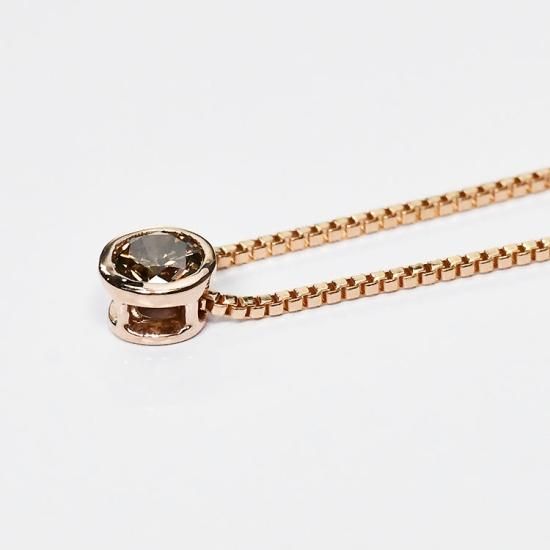 ブラウンダイヤと相性抜群(より一層カラーダイヤが美しく映える)のピンクゴールドやイエローゴールドカラーの地金にセットさせていただきます(プラチナやホワイトゴールドには出せない綺麗さです)。カート付近の選択欄よりお好みの地金カラーをお選びください。