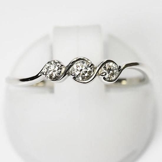 K10WG ダイヤモンド0.1ct(SIクラス・鑑別書カード付) スリーストーンリング トリロジー