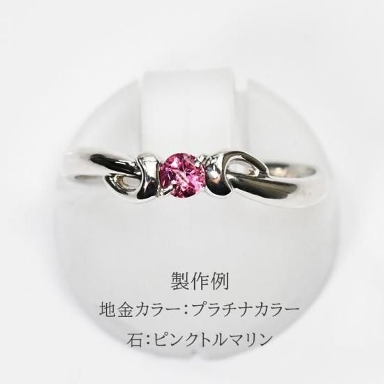 セットする天然石(誕生石)をお選びいただけます。大切な方への誕生日プレゼントにもオススメです!リボンのようなデザインの枠に誕生石が収まったキュートでエレガントなリングとなっております!