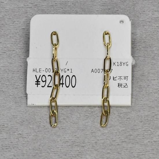 K18 ペーパークリップチェーンピアス スタンダード ミディアム スタッドピアス 18金 イエローゴールド