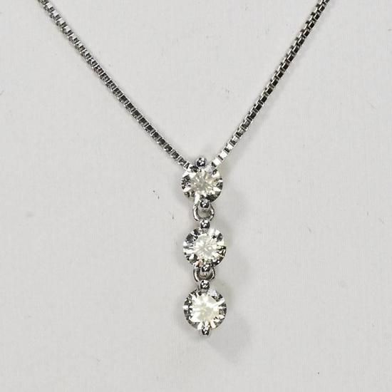 現品限り 天然ダイヤモンド 0.5ct 3ストーンネックレス プラチナ仕上げ 日本製 シルバー925 ダイヤモンドネックレス